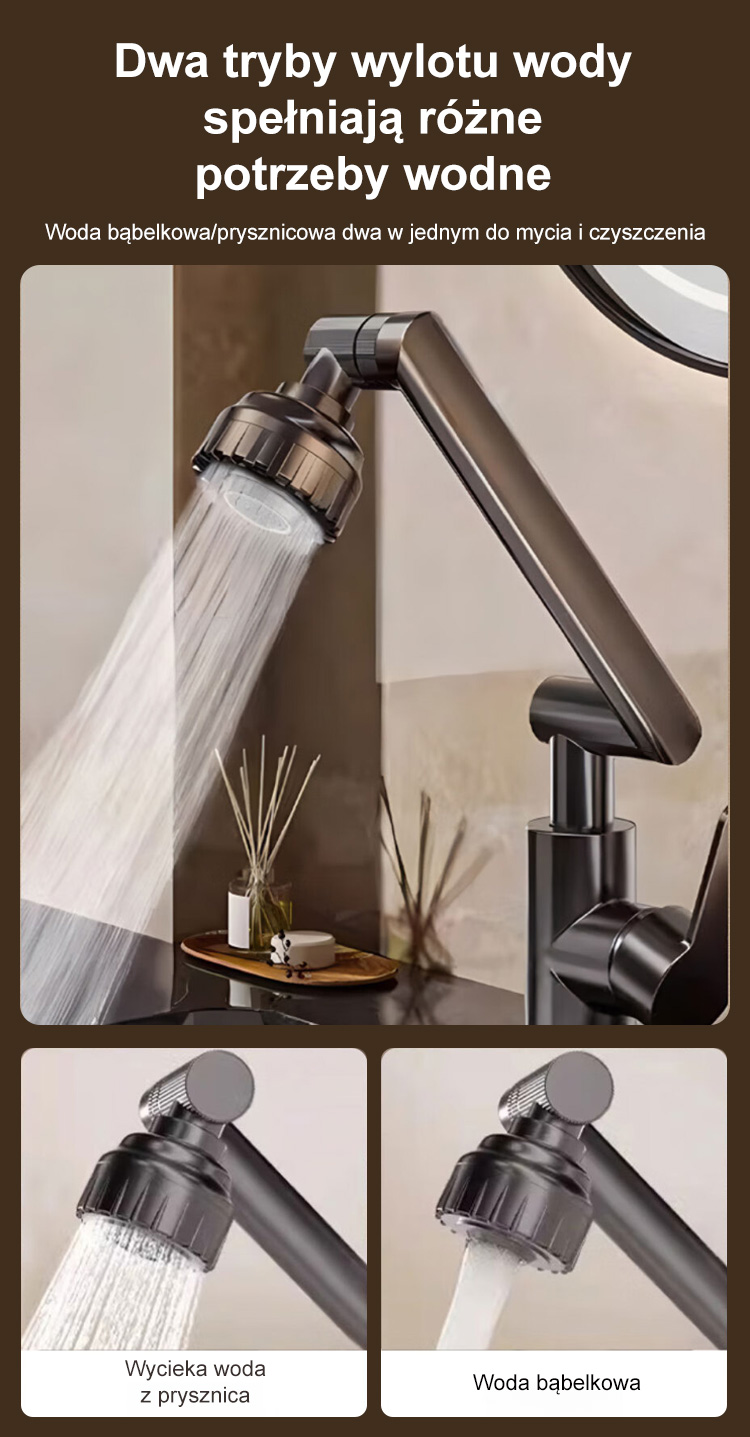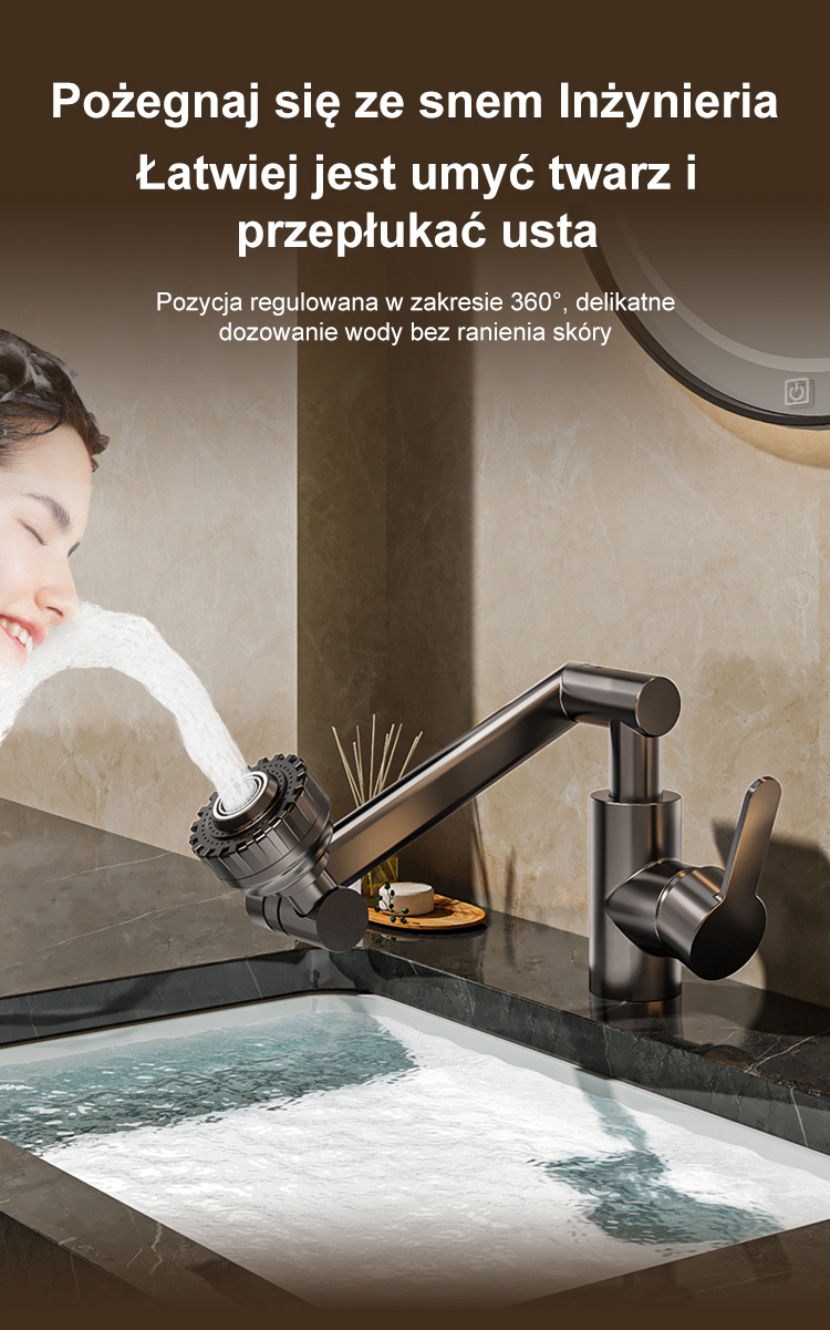 🚰 Automatyczne wykrywanie przepływu wody, pełny obrót o 1080°, dokładne czyszczenie!