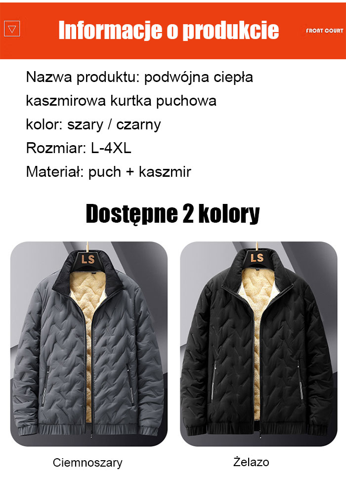 Dwuwarstwowa ciepła kurtka puchowa z kaszmiru
