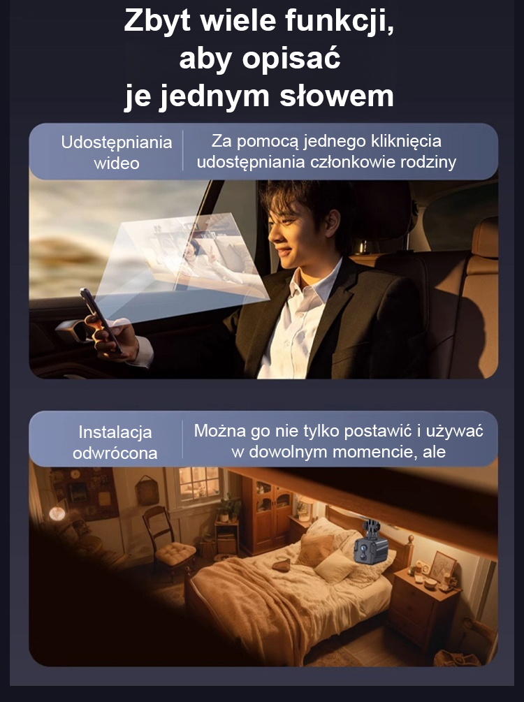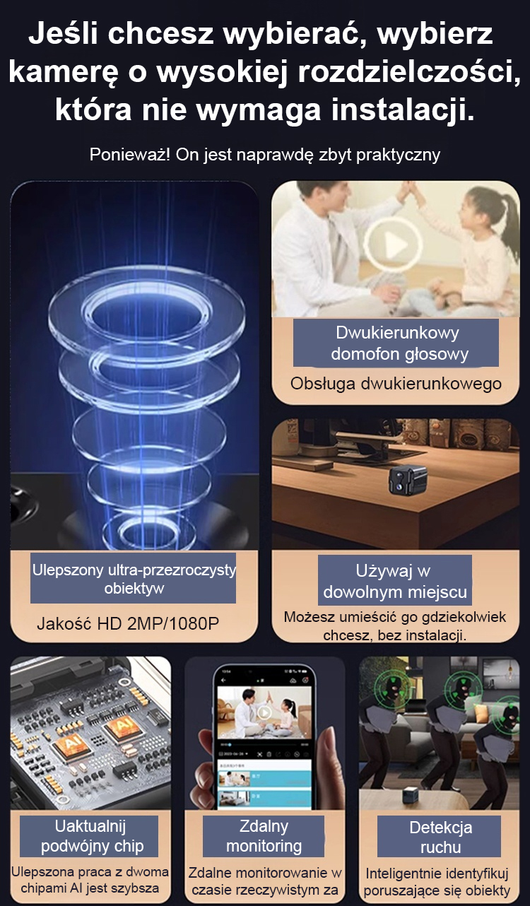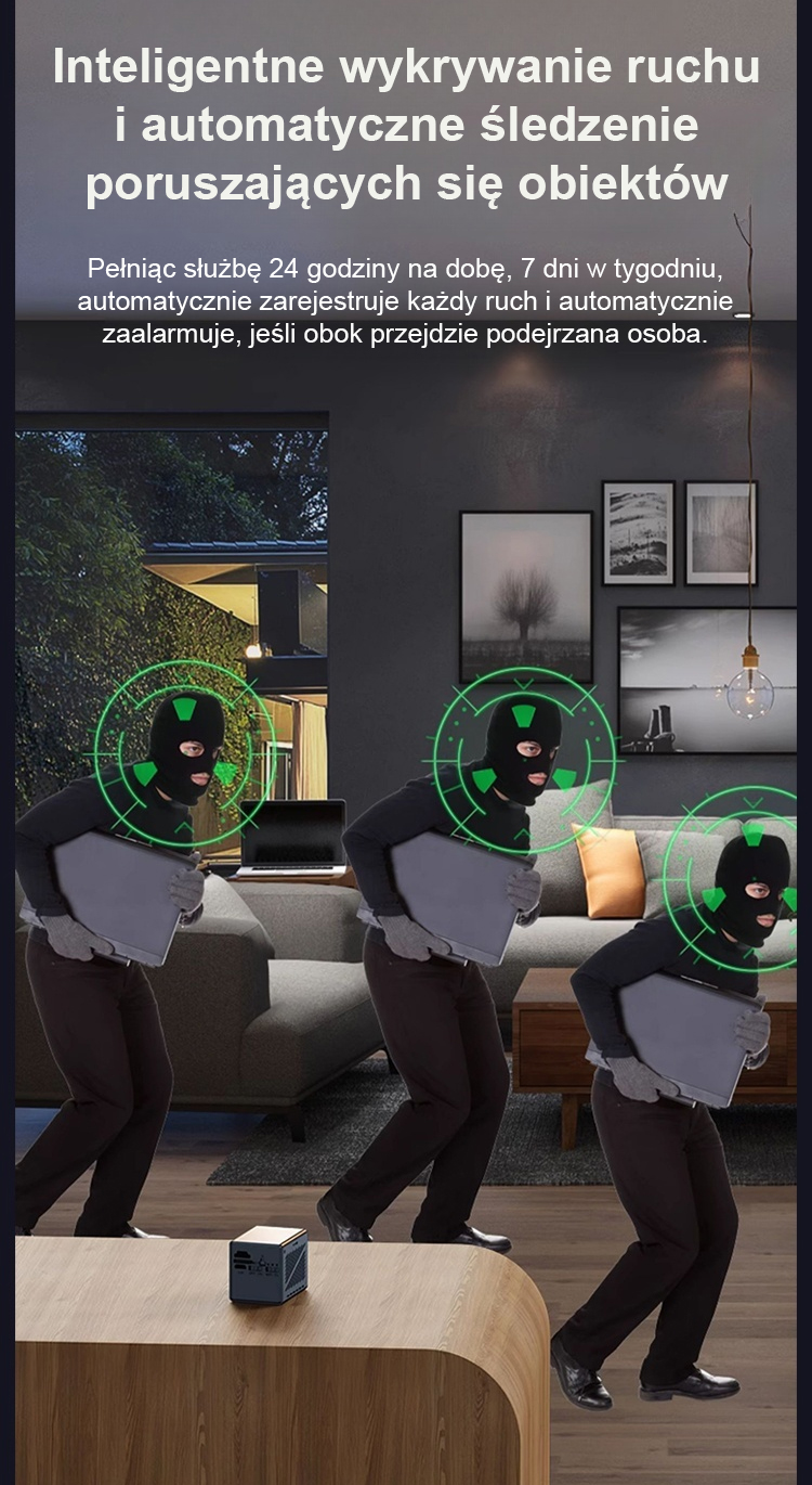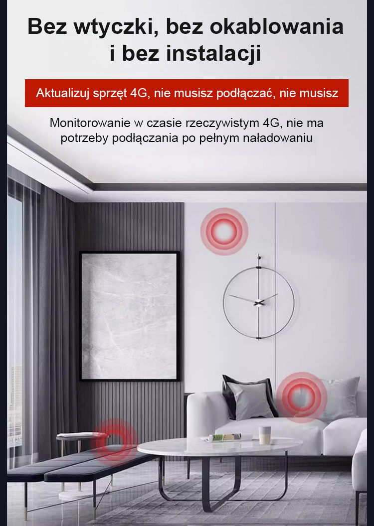 Ten system bezpieczeństwa domowego nie wymaga przewodów zasilających ani instalatorów. Nie trzeba wbijać gwoździ w ścianę ani prowadzić kabli. Prawdziwie proste i wygodne zabezpieczenie