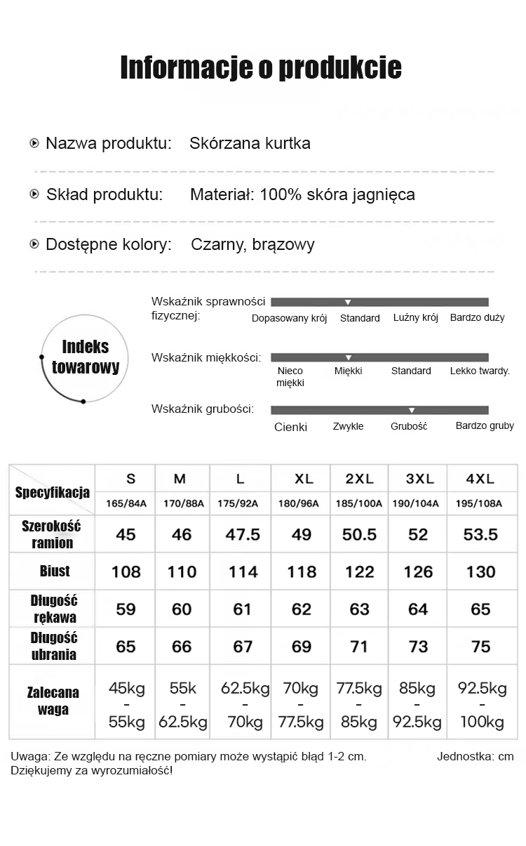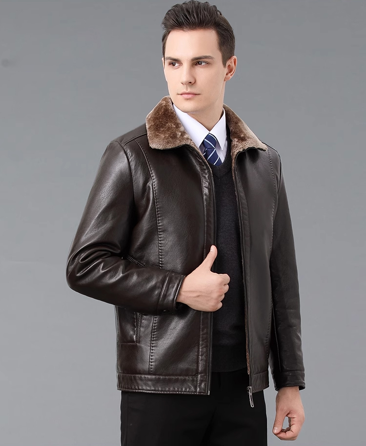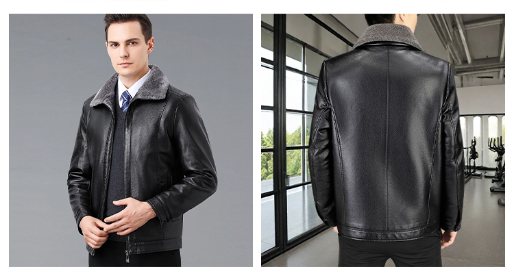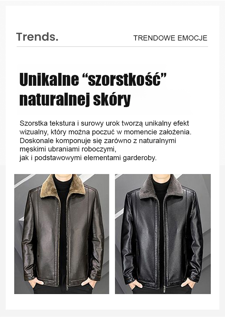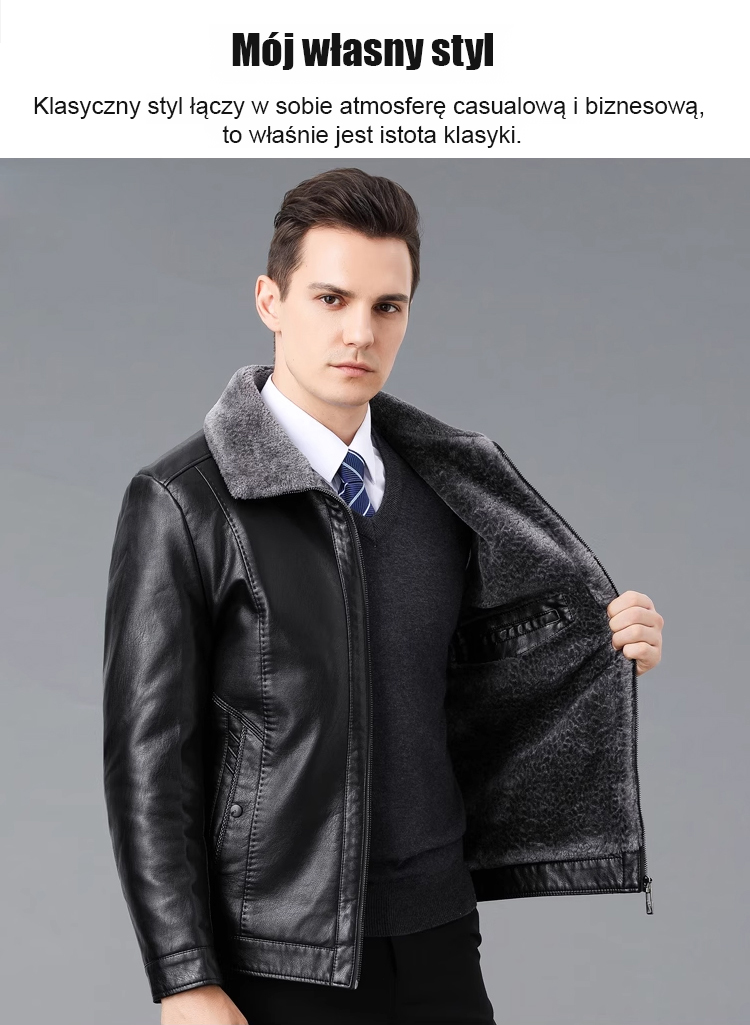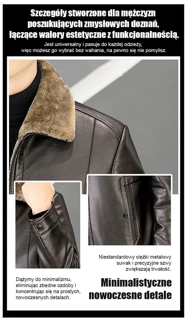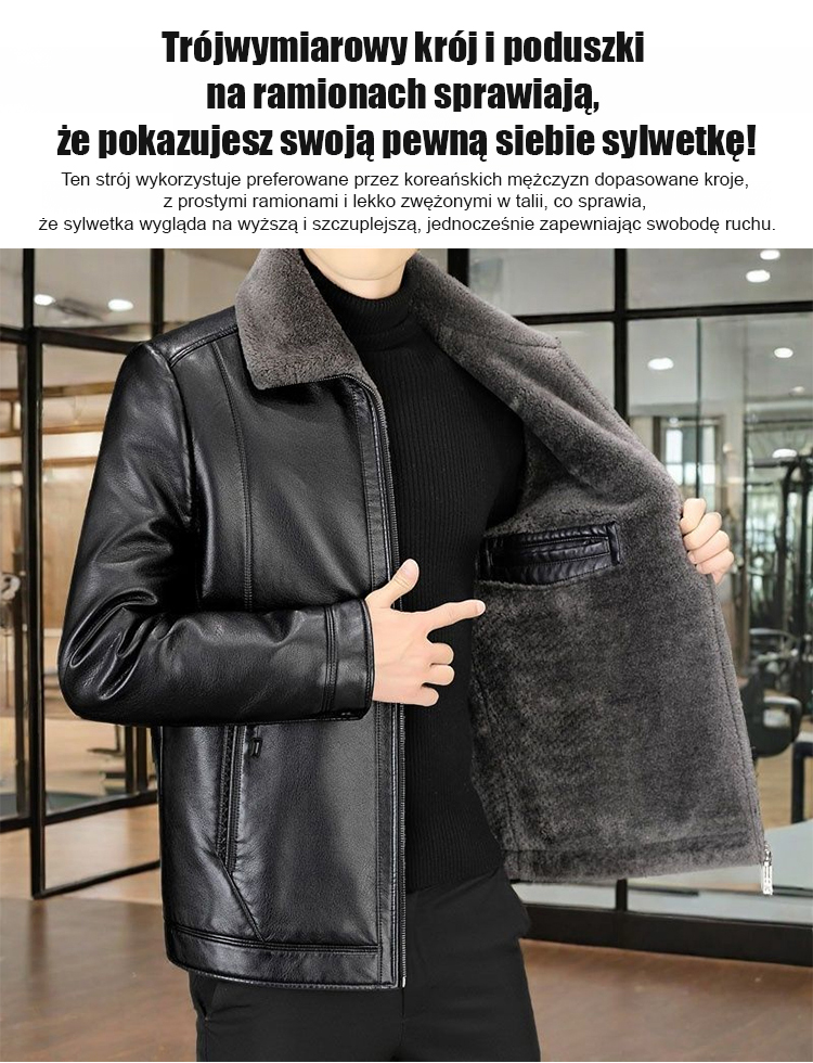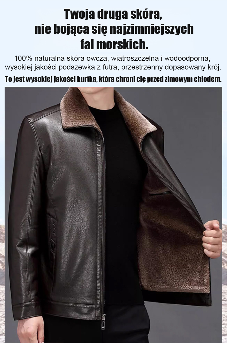Męska skórzana kurtka ocieplana i pogrubiona.