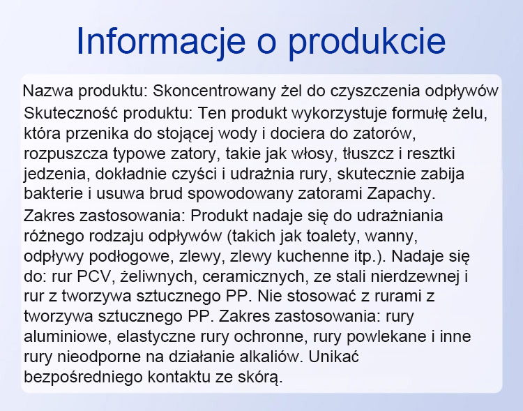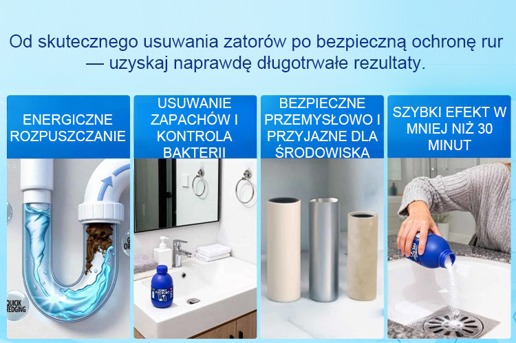 ✅ Skuteczne działanie: Szybko rozpuszcza typowe zatory, takie jak włosy, tłuszcz i papier toaletowy, bez pozostawiania śladów.