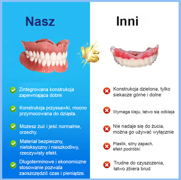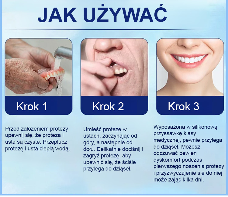 Pewność siebie podczas żucia, więcej bez obaw o luźne protezy! 🦷 Amerykański zestaw udoskonalonych protez 🔥 Odzyskaj młodzieńczą siłę gryzienia